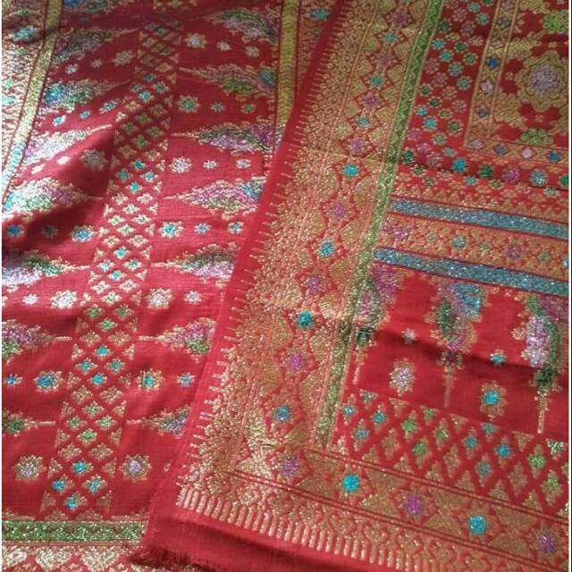 Songket tumtuman tenun tradisional tarutung mandar sarung pesta wanita .